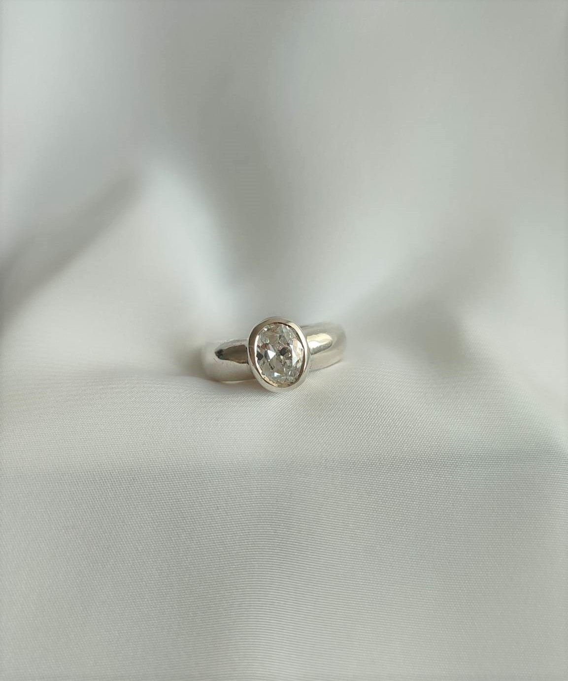 Kaunis hõbedast sõrmus ovaalse tsirkooniga.